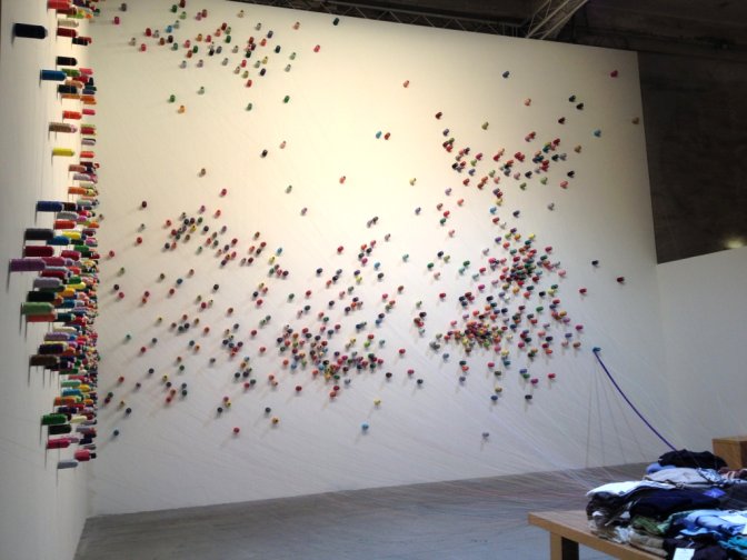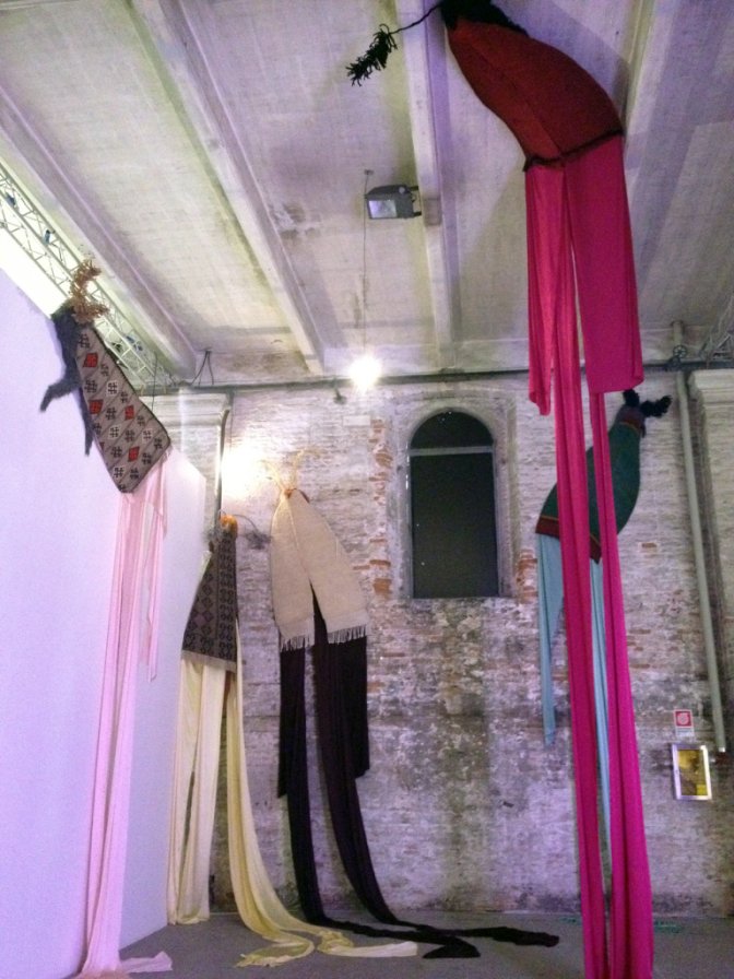 A côté des personnalités déjà célébrées, la sélection propose un véritable renouvellement du panorama artistique avec 103 artistes qui participent pour la première fois à l’événement, livrant des travaux ambitieux et particulièrement remarqués. Parmi les œuvres les plus marquantes, le textile est à l’honneur. Dès l’entrée de la Corderie, Mingwei Lee détisse des vêtements donnés par les visiteurs et les projette sur les murs de l’exposition : lien matérialisé entre le regardeur et l’oeuvre.