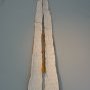C’est très net avec « Liturgie d’argile » qui s’affirme dans le champ du rituel. Les étoles sont visibles, mais leur couverture par des langues de céramiques blanches rappelle à la fois la culture nipponne, par le matériau et la couleur, et les chefs de plumes d’Indiens, qui relèvent d’autres univers et rituel. Avec Thomas Tronel-Gauthier et « Matière d’origines », en décembre 2013, Giotto était évoqué par la présence d’une splendide truelle laquée à la feuille d’or. Étrangement, c’est le recouvrement d’un objet ancien par une matière brillante (Or/blanc brillant) qui constitue le point commun des deux expositions de la galerie. La nouvelle commissaire serait-elle sensible à la transfiguration des objets et de manière subliminale à une expérience spirituelle connue et exprimée par bien des artistes ?