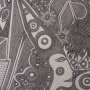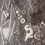 Fou de Trac : est visiblement un jeu de mots pas si innocent que cela. En effet, l’artiste est aussi présent dans les spectacles vivants mis en scène au sein même de l’église Saint-Merry. Quoi de plus « naturel » que d’avoir le trac, même devant quelques dizaines de personnes, surtout quand on les connaît. Or la dernière pièce, de Luc Boltanski, « L’inquiétude des funambules », qui y a été donnée, avait comme cadre une maison de retraite fermée, une institution, le type même de lieu où l’on trouve régulièrement des œuvres d’art brut. Fou-de-Trac semble désigner l’intensité de ce qui travaille l’artiste dans ses divers temps de création ; il se dévoile à la fois simplement et en rigolant de son état émotif, pour mieux le mettre à distance. L’artiste serait-il un funambule inquiet se déplaçant sur ses propres lignes ? Mais ces dessins ne sont en rien foutraques sur le fond, la forme ou l’origine. Qu’il y ait émergence d’une partie d’inconscient, c’est probable et n’a pas à être connu du visiteur : celui-ci n’a qu’à se laisser embarquer dans un océan de lignes et de points, émergeant de l’intériorité artistique. Il y a probablement du symbolique, mais il ne se laisse pas saisir.