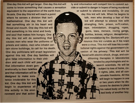 En 1989, cette œuvre fait partie d’une expo itinérante de travaux de dix jeunes artistes, comme on en voit tant. Pendant plusieurs mois, celle-ci ne provoque aucune réaction, jusqu’à sa dernière étape, Richmond, dans le Virginia Museum. Deux jours avant la fermeture, une lettre est publiée dans le journal local par un lecteur qui s’étonne. Immédiatement, le Président de l’American Family, association conservatrice s’il en fut, se saisit de l’affaire et la porte au niveau politique national en protestant contre le versement d’une subvention de 15 000$ d’un organisme fédéral de soutien aux arts. Cette subvention n’était qu’une simple aide au transport de ville en ville . C’est le début d’une longue saga portée par les milieux conservateurs, de remise en cause des politiques fédérales.