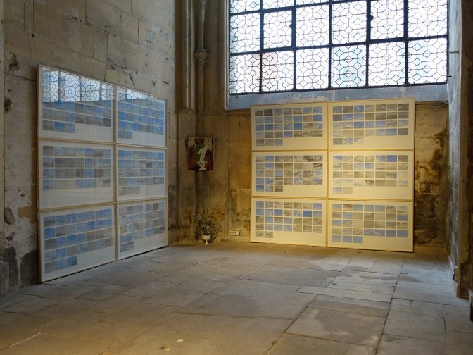 Dessiner un morceau de ciel chaque jour. Une œuvre subtile faite de 365 dessins au pastel. Une œuvre contemplative et communicative. À Saint-Merry