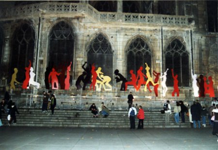 Une silhouette est un dessin au service du mouvement, in destin inhabituel fondu dans une aventure, c’est la danse des corps et collective. Des silhouettes en lutte, des âmes sur la scène de la vie, des points aux côtés d’autres qui composent une ligne.