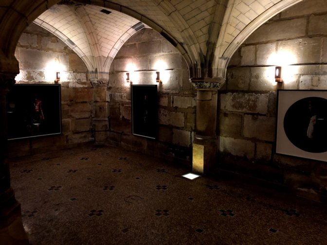 En effet, les photographies choisies par Iwajla Klinke, artiste allemande d’une quarantaine d’années, trouvent dans la crypte sombre de Saint-Merry [1] un milieu totalement différent de celui des galeries qui accroît la part de mystère et de rituel habituelle dans son œuvre.