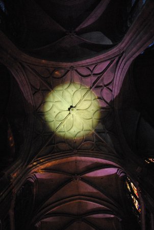 La lumière et les sons, langages de ce soir, nous proposent un autre regard des yeux et des oreilles sur un bâtiment, connu de certains, mais à re-voir, pour tous. La tradition de la lumière et de la musique n’est pas une nouveauté dans nos églises, elle y a toujours tenu une vraie place. Ce soir la lumière sera peut être comme une liturgie, elle même. Il ne s’agit plus de parler, d’entendre un langage "de la tribu" mais d’ouvrir nos murs à toute personne qui désire voir, de laisse notre imagination chevaucher une bulle de savon pour partir du côté de la poésie. L’espace retrouvé, les piliers redessinés, le sol en toute sa splendeur…sont offerts… à la beauté. Les pas s’arrêtent, le regard se perd et suit la lumière qui dessine de nouveaux horizons pour nous dire un nouvel espace, un nouveau temps à vivre dans cette nuit,. Ce qui n’était pas visible se donne ce soir, et déclenche en nous une émotion proche, pour certain d’un acte de foi, proche pour d’autre de ce que toute beauté peut dire au cœur de l’homme.