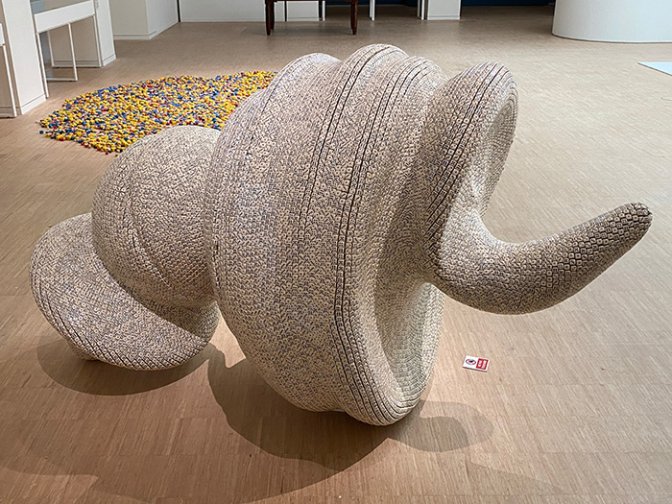Le grand sculpteur britannique et allemand, ayant occupé en 2013 la Chaire de Création artistique du Collège de France, a adopté le savoir-faire de l’artisan dans des sculptures monumentales. Se situant dans le sillage des nouveaux réalistes, il reprend des formes dérivées d’objets ordinaires, en amplifiant des lignes ou formes courbes et en utilisant des matériaux inusités, voire rejetés de l’industrie, pour leur conférer de la noblesse. Sa poêle tient aussi de la corne d’abondance, celle qui déverse la fortune, comme les dés peuvent le faire.