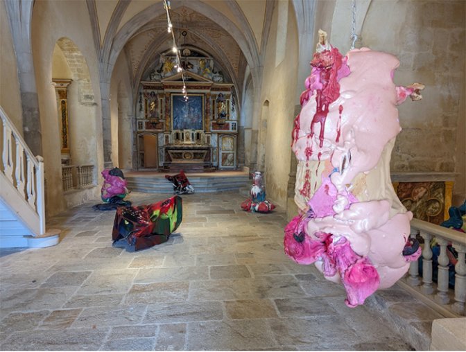 Éclatant, débordant de couleur et de force, une œuvre tout empreinte de pataphysique pour inaugurer un nouveau centre d’art dans une ancienne chapelle retrouvant vie.
