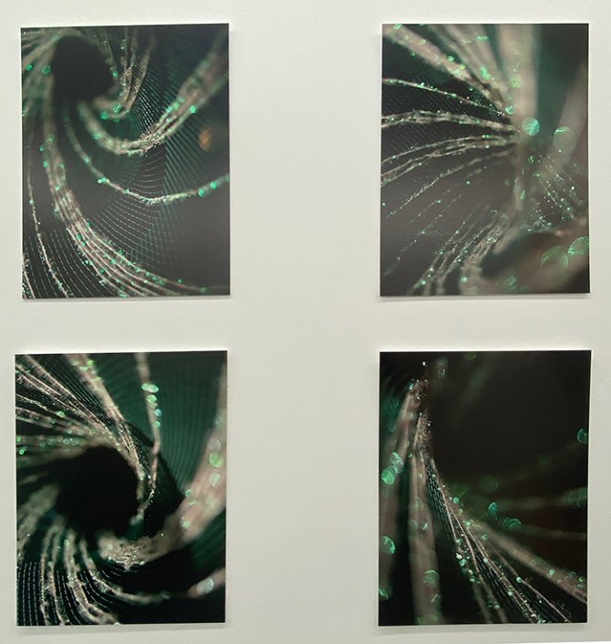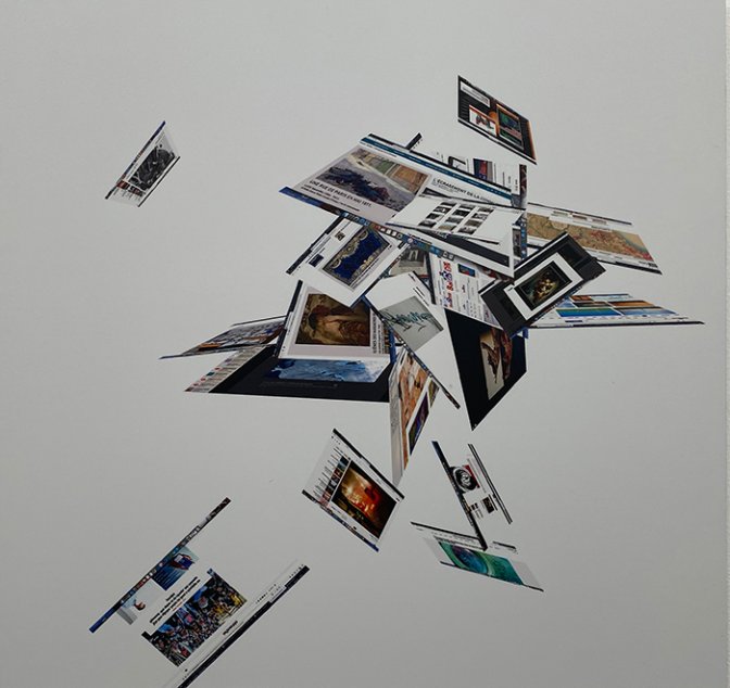 Tandis qu’avec la série d’impressions sur Dibond Images fuyantes, elle explore l’espace numérique dans sa platitude, son encombrement, sa systémique pour le désordonner, le désorienter, l’aérer. À travers ces nouveaux champs de vision, l’artiste-anthropologue donne de la profondeur et de la perspective à ces images qui nous font face à plat. Il s’agit d’expérimenter un autre rapport à l’image qui ne serait pas en deux dimensions.