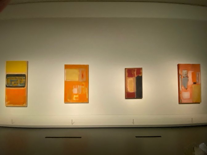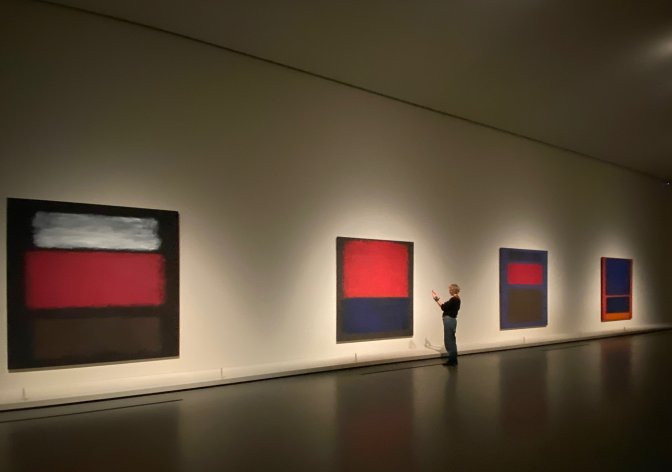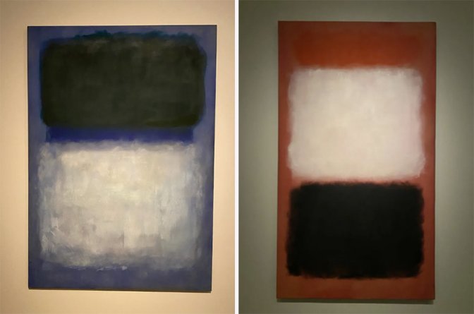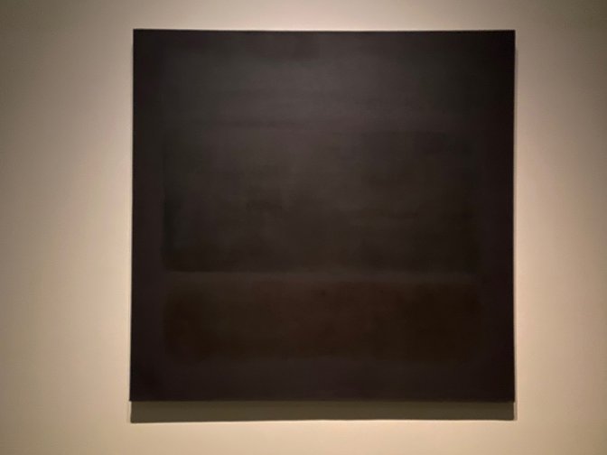 Un rectangle noir en haut d’une toile ne produit pas le même effet que s’il se trouve en bas. Les noirs ne le sont pas, ce sont des superpositions de brun ou de violet comme dans la chapelle de Houston ou encore la salle « Black and Gray » dont les tableaux sévères et minimalistes auraient dû dialoguer avec les statues de Giacometti dans le nouveau bâtiment parisien de l’UNESCO.
