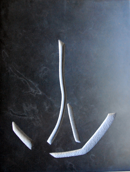 Le travail du marbre noir dans mon parcours est une histoire amusante qui a commencée par la récupération sur le trottoir, près de l’atelier que j’occupais alors à Montreuil, de restes abandonnés d’une cheminée démontée ; mis de côté en me disant : « ça servira », l’idée a peu à peu germé d’entailler ces surfaces pour y reproduire des figures, sous l’influence et dans la mémoire des très belles gravures sahariennes d’il y a sept mille ans - plateau de Dider au nord de Djaneten Algérie.