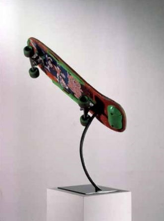 Mounir Fatmi n’est pas le premier à utiliser la planche à des fins artistiques, car c’est un marqueur de notre société contemporaine. De nombreux artistes y ont fait appel très différemment, avec d’autres finalités. Ainsi, [Bernard Lavier|http://www.centrepompidou.fr/education/ressources/ENS-airsdeparis/ENS-airsdeparis.html], artiste qui pose un regard acéré sur notre culture contemporaine en a présenté une en utilisant les codes muséographiques de la présentation des objets rituels des arts premiers. La planche serait alors l’équivalent d’un masque fétiche africain ancien. Le choc des cultures ? Ou une réflexion sur le caractère archaïque de ce type de sport ?