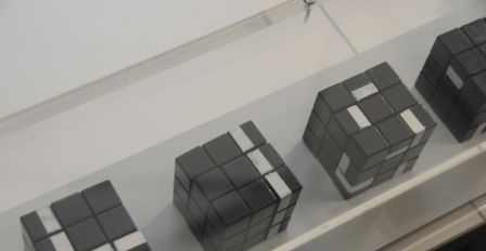 Casse tête pour musulman modéré, est un jeu étrange. Cette œuvre est une suite de cinq rubikcubes (encore cinq !) alignés les uns à côté des autres. À la place des trois couleurs primaires, beaucoup de carrés noirs et quelques-uns blancs. La force de cette œuvre tient dans le minimalisme des moyens et le fait de présenter simultanément des situations qui se succèdent dans le temps du jeu.