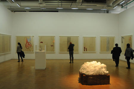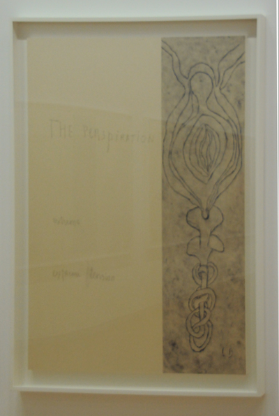 Si l’on définit plus volontiers Louise Bourgeois comme un sculpteur, le dessin a toujours eu une place importante dans son travail, en tant que véhicule direct et immédiat de l’expression de ses fantasmes, de ses pensées visuelles et obsessionnelles – ses « pensées-plumes ». À partir du milieu des années 1990, elle commence à constituer des ensembles cohérents de dessins – le premier en date étant Dessins d’insomnie (1994-1995) – qu’elle conçoit comme des mises en espace. Aussi bien dans l’accrochage, véritable livre mural, que dans les compositions des panneaux, jouant le contraste des vides et des formes, elle crée des espaces clos, des cellules qui évoquent ses installations – les Cells. Un va-et-vient complémentaire et incessant de l’image à la matière s’opère dans toute son œuvre, la métamorphose étant un des principes essentiels de son activité créatrice.