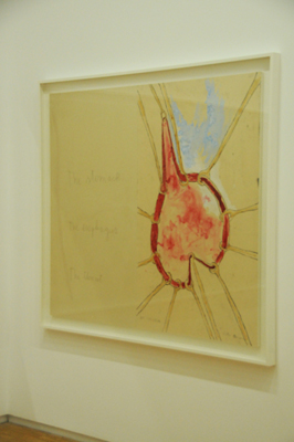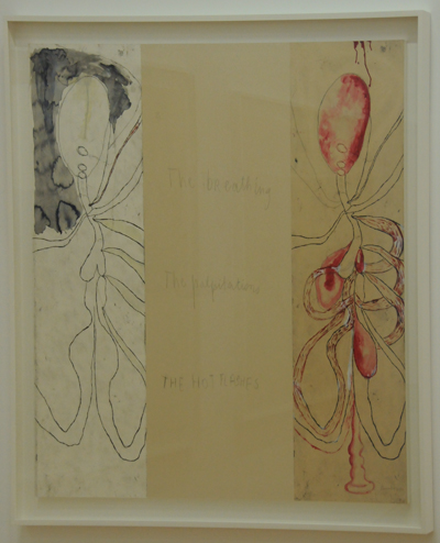 Traversant divers mouvements artistiques comme le surréalisme, l’expressionnisme abstrait, le minimalisme, elle a su développer un langage personnel où les questions sexuelles et autobiographiques occupent une place centrale. Le Centre Pompidou, dans l’accrochage elles@centrepompidou, lui rend hommage en exposant sa dernière œuvre graphique, Extrême tension.