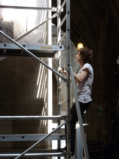 Le songe du dormeur et les anges sont à la convergence de ses questionnements spirituels et artistiques. Un tableau de la fin du gothique, l’Échelle de Jacob de Nicolas Dipre (école d’Avignon début XVIe), l’avait fascinée et à l’origine de cette installation :