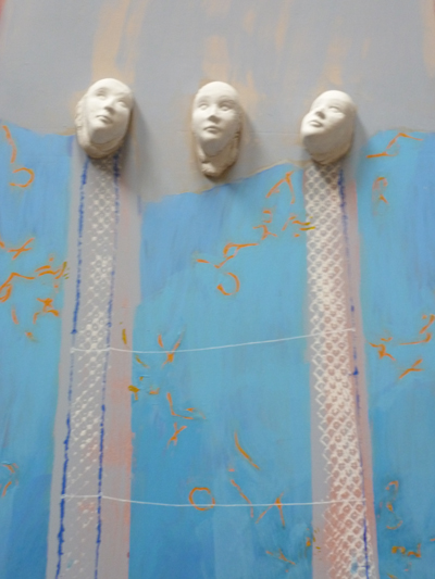 Martine Chittofrati transgresse aussi les limites : ses anges sont des hommes et des femmes (comme à Santa Maria del Popolo) qui peuvent aussi emprunter des attributs à l’autre sexe ; elle inclut des lettres à ses tissus peints ; elle associe un poète et un musicien, etc. Les frontières entre son, texte et visuel sont allègrement franchies.
